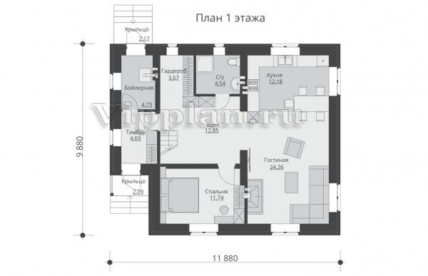 | Размеры дома: | 9.88м×11.88м |